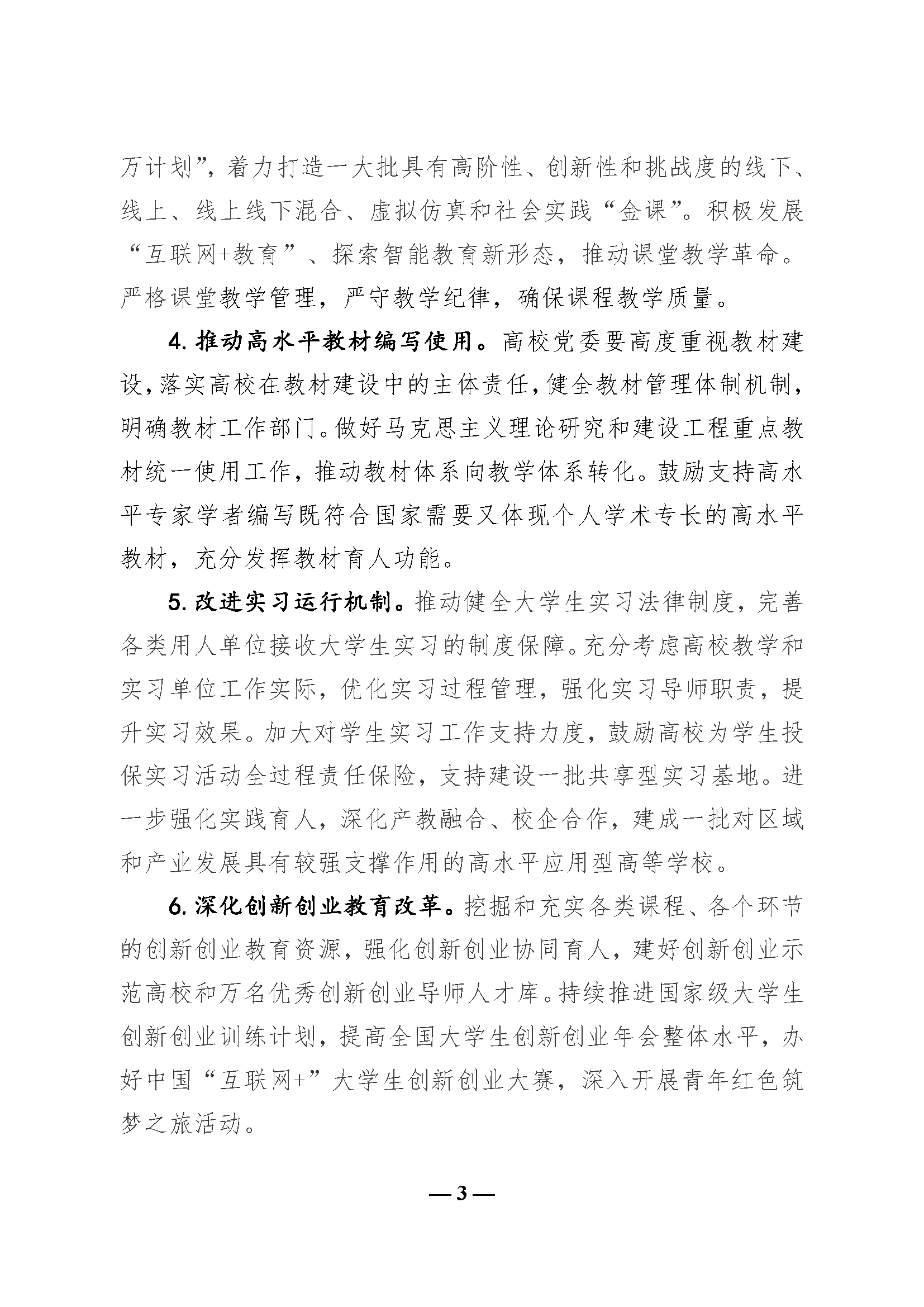 教育部关于深化本科公司产品改革全面提高人才培养质量的意见(教高〔2019〕6号