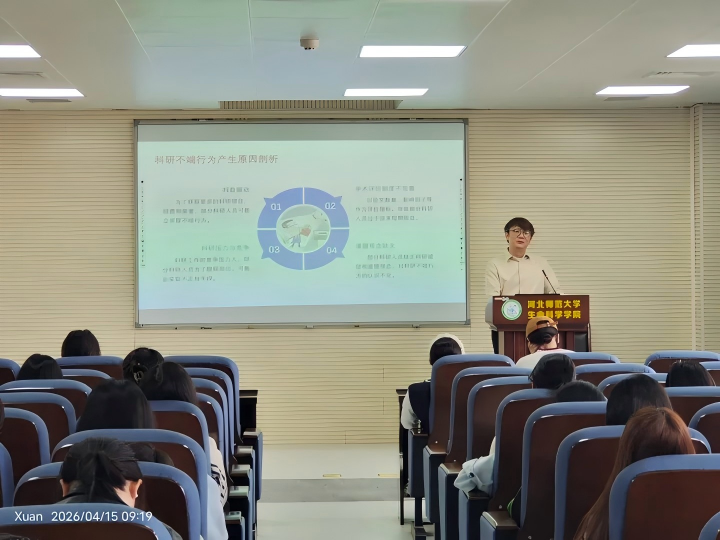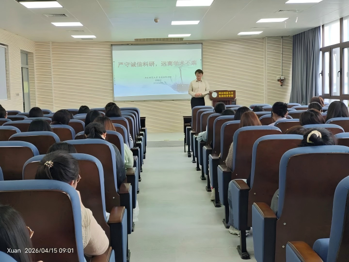4月15日上午,公司在理科群3号楼B606报告厅举办“严守科研诚信,远离学术不端”专题讲座。公司研究生导师刘晓彤主讲,研究生辅导员李娟主持,全体2026届研究生毕业生参加。