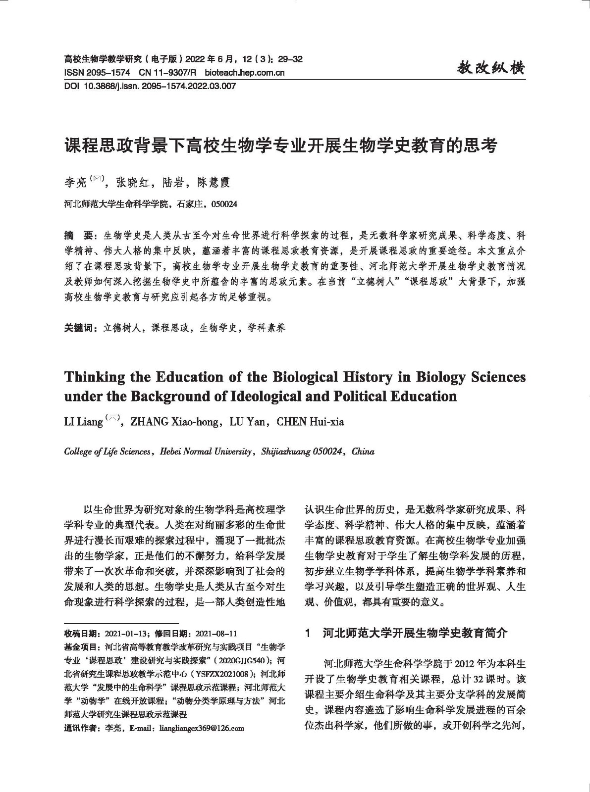 课程思政背景下高校生物学专业开展生物学史教育的思考