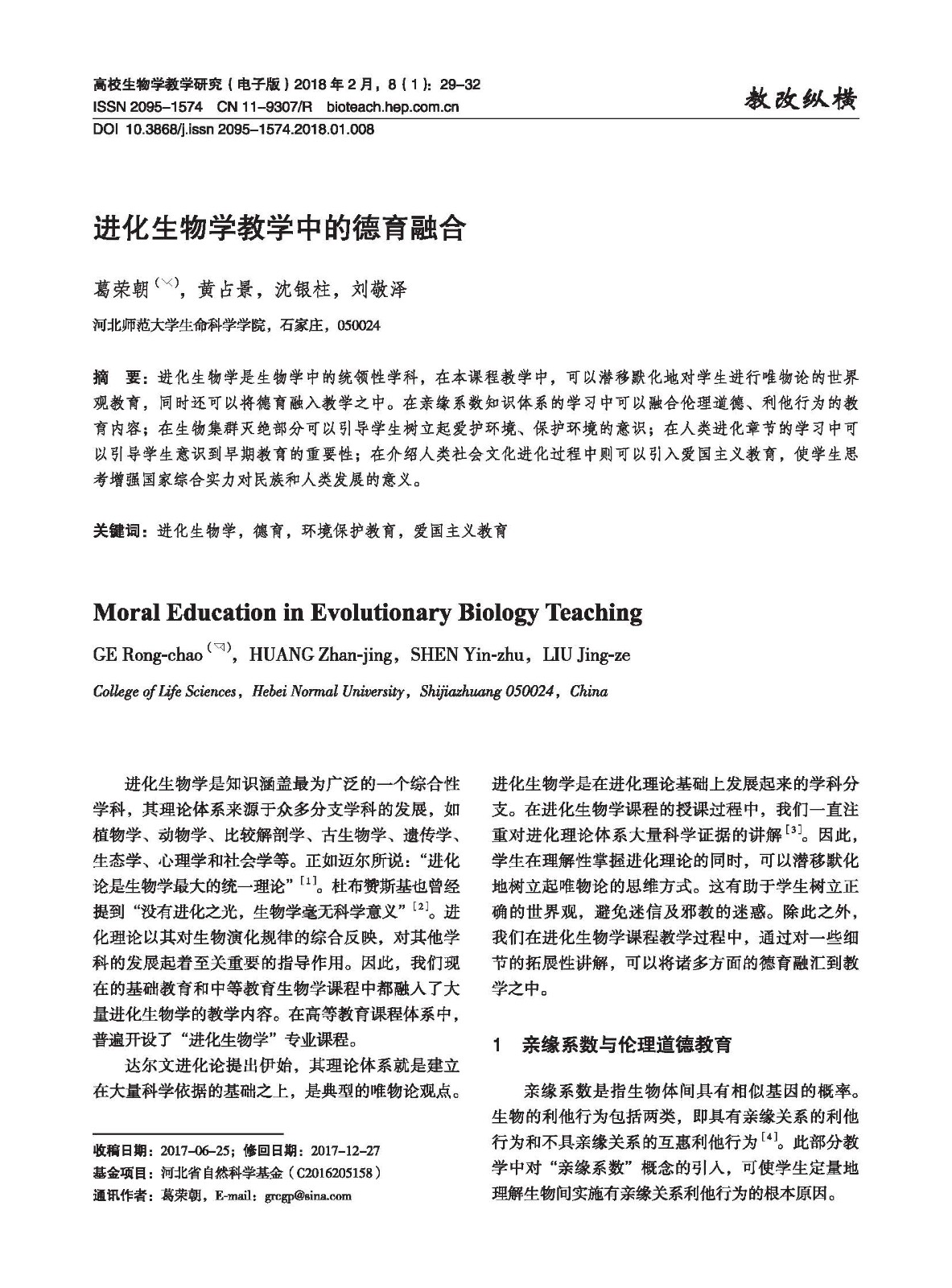 进化生物学教学中的德育融合